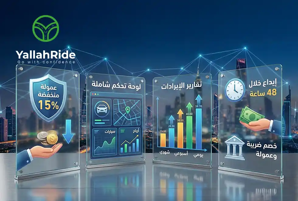 الكباتن الكباتن 1 . عموله منخفظه لاتتجاوز 15 %2. لوحة تحكم شاملة: لمتابعة سياراته وأرباحه.3 . تقارير الإيرادات: تقارير مفصلة عن الأرباح اليومية والأسبوعية والشهرية.4 . ايداع لمستحقات الكبتن بعد خصم الضريبه والعموله خلال 48 ساعه